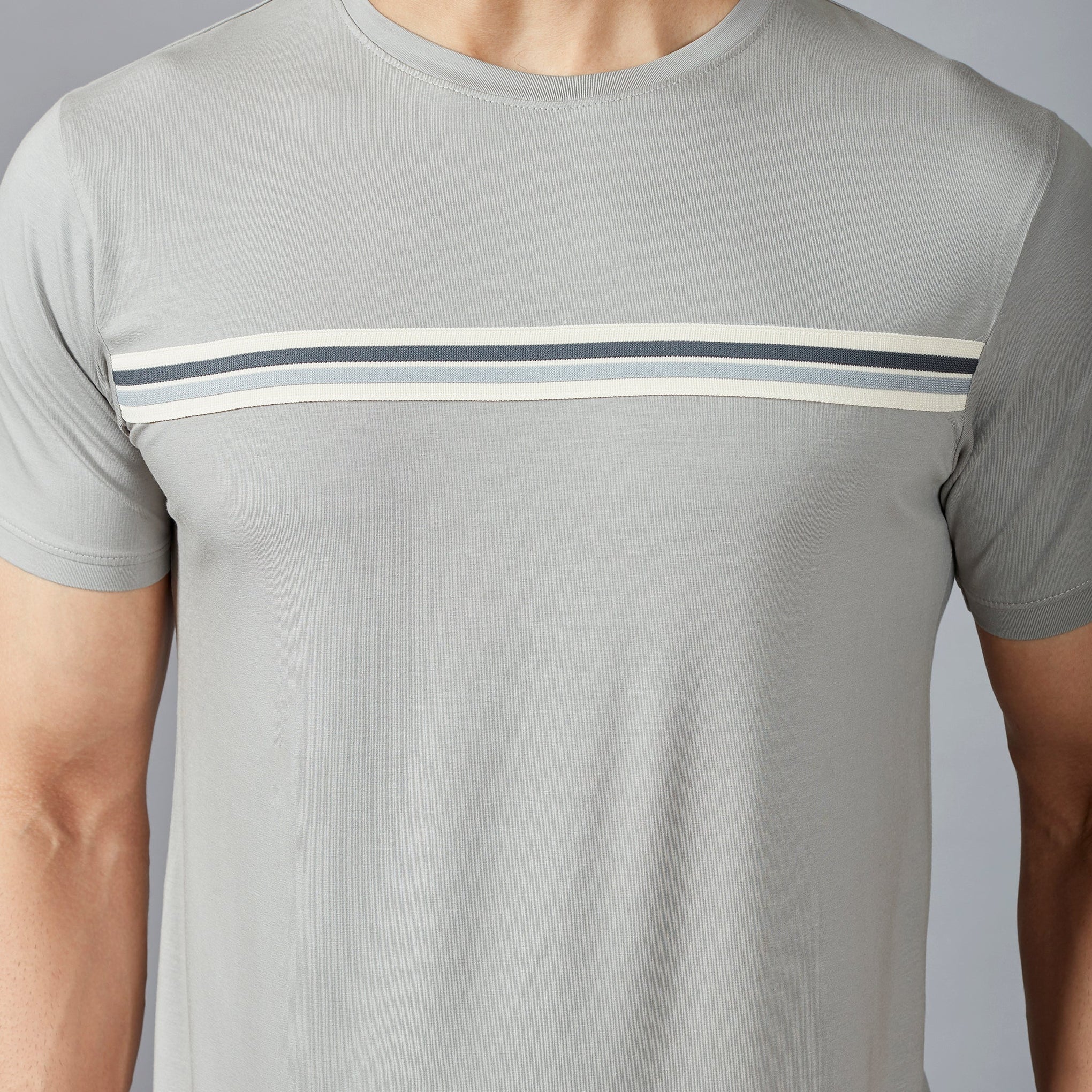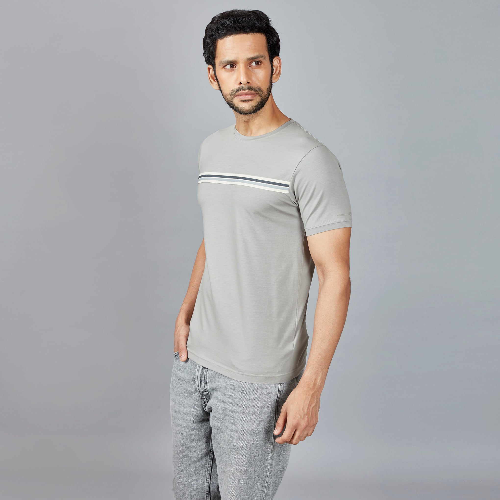 T-shirt featuring a sleek and contemporary design Flat Knit Panel Stripes adorning the chest. Elevate your casual style with this modern twist on a classic wardrobe staple Perfect for warm weather or layering during cooler days, the half sleeves provide versatility to adapt to different seasons