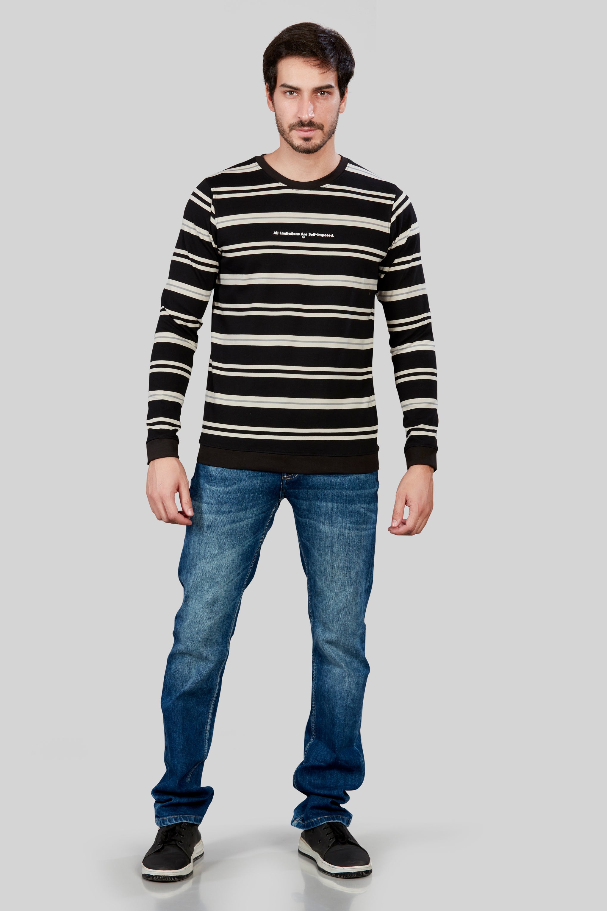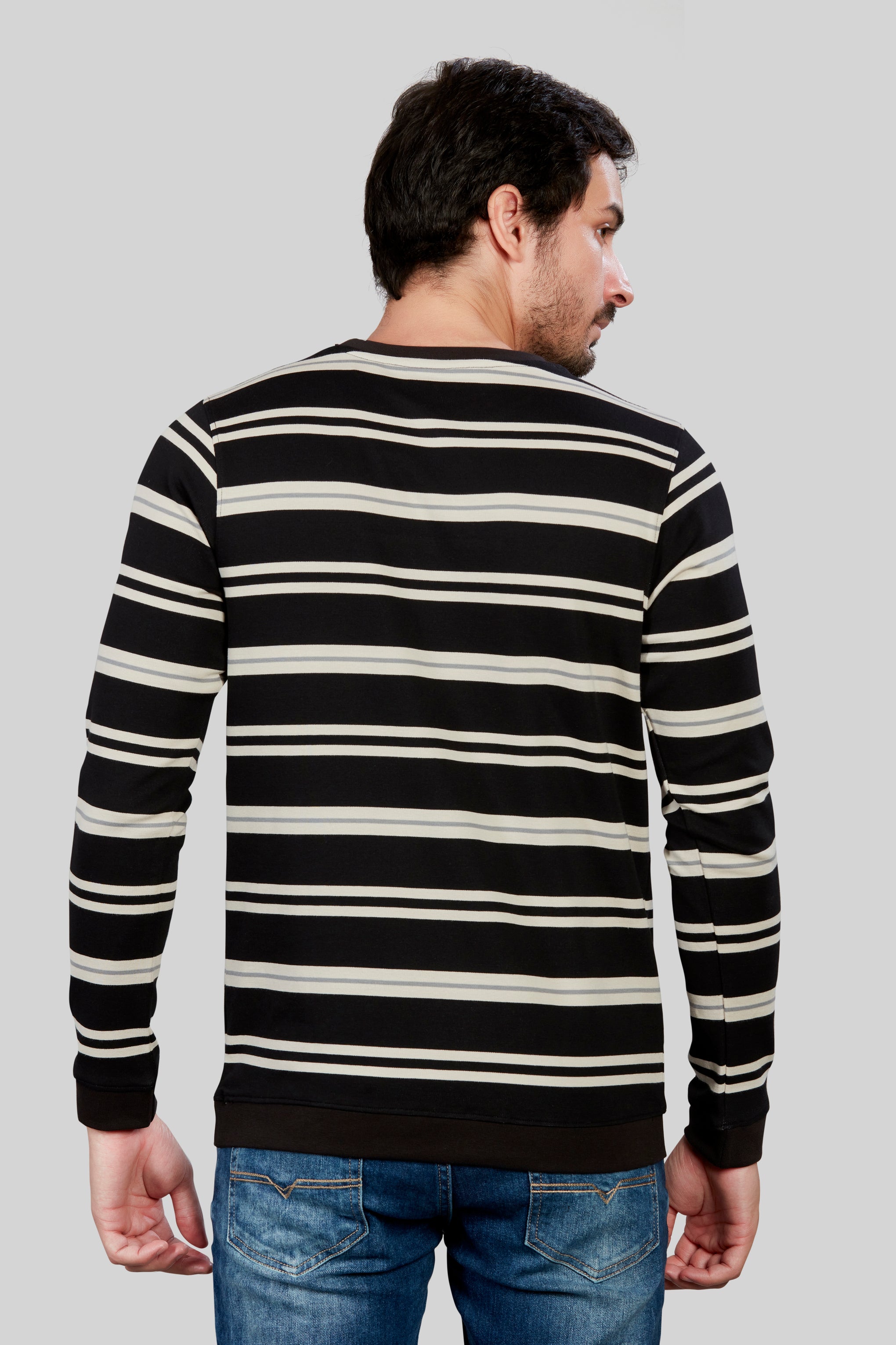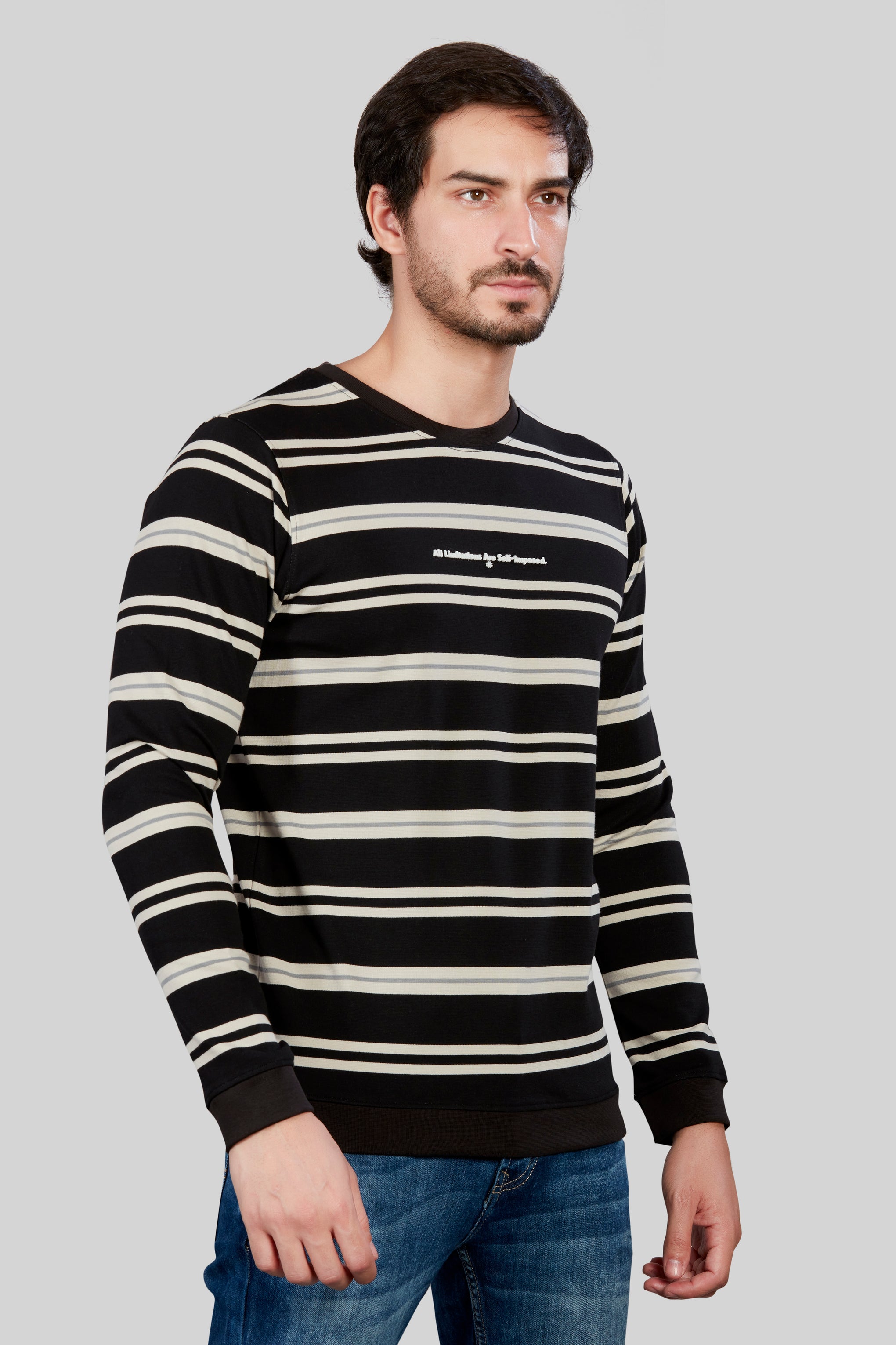 Striped Round Neck black full sleeve T-shirt