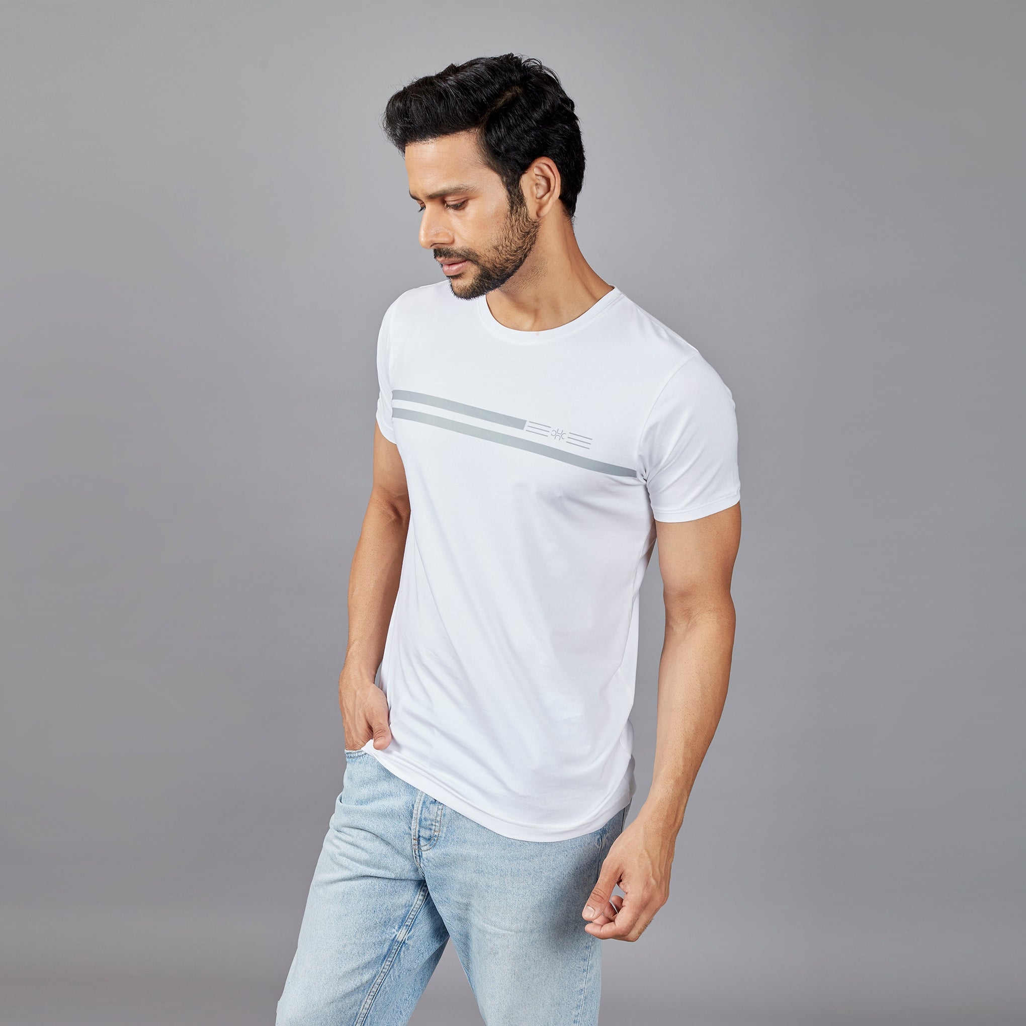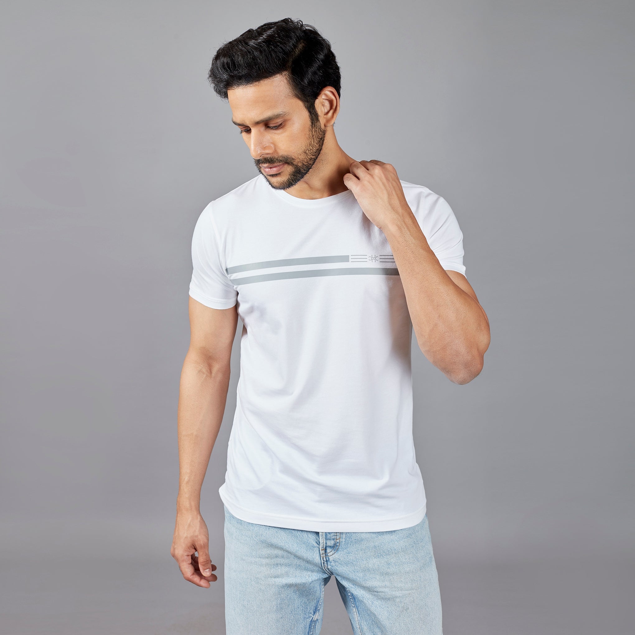 Bold stripes on the chest adds a touch of sophistication and a sporty vibe to elevate your casual look Perfect for various occasions whether you're going out with friends or simply enjoying a relaxed day.