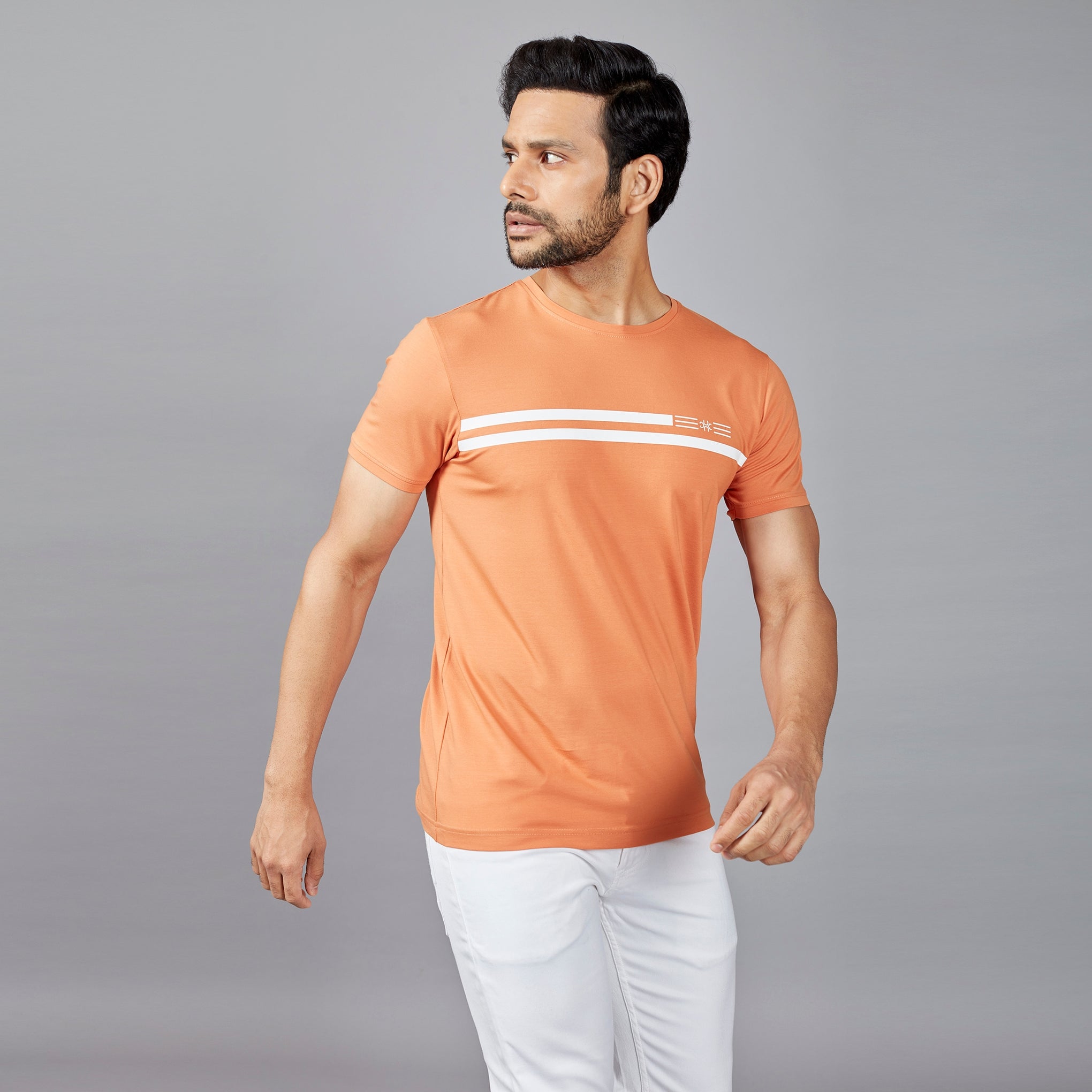 Bold stripes on the chest adds a touch of sophistication and a sporty vibe to elevate your casual look Perfect for various occasions whether you're going out with friends or simply enjoying a relaxed day.
